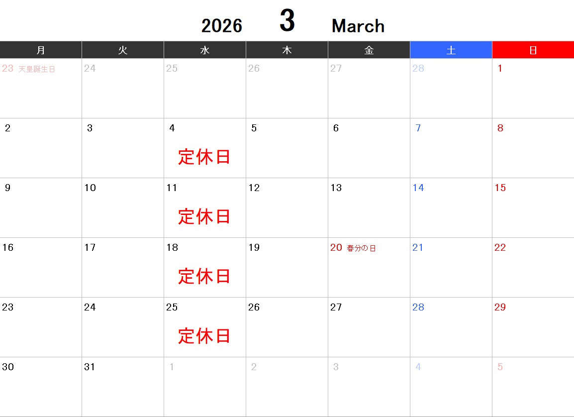 2026.02.22 3月営業カレンダー